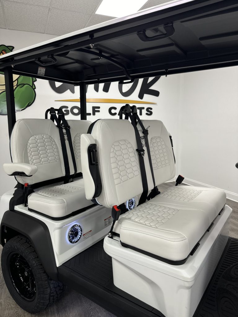 NEW! 2026 WHITE/BEIGE INTERIOR VENOM EV STEALTH 4 SEATER featuring ECO 160AH BATTERY UPGRADED TIRES & RIMS In partnership with MODZ, all models come equipped with steel belt radial hybrid street tires. THREE POINT SEAT BELTS With Flexible, Locking Latchplates Venom EV golf carts come equipped standard with a 105Ah LiFePO4 Lithium Eco Battery with […]